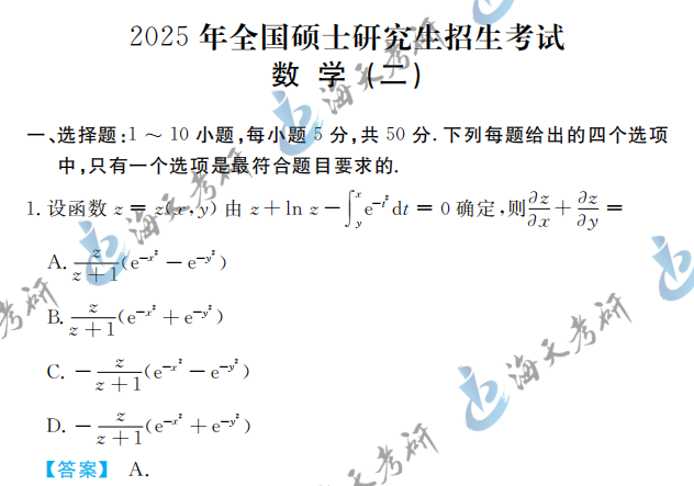 以上就是海天考研网为各位考生整理的2025考研数学(二)真题—选择题,仅限参考。持续为考研学子更新其他考研科目考研真题及答案解析,各位考生可以根据自身需要关注收藏,及时查看完整版2025考研真题及答案解析。